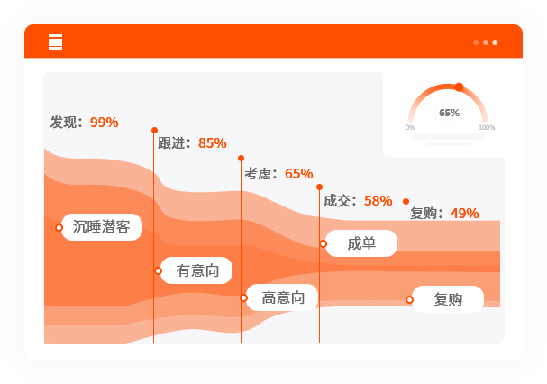 線索池匯總分析,根據每位潛在客戶的身份識別、互動情況,AI自動評分,幫助企業篩選流量池中的高價值客戶,開展定向內容營銷或設定互動旅程。